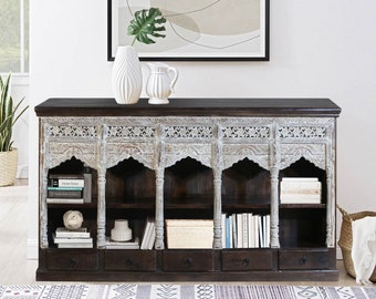 Bohemian Carved Wood Sideboard Etsy